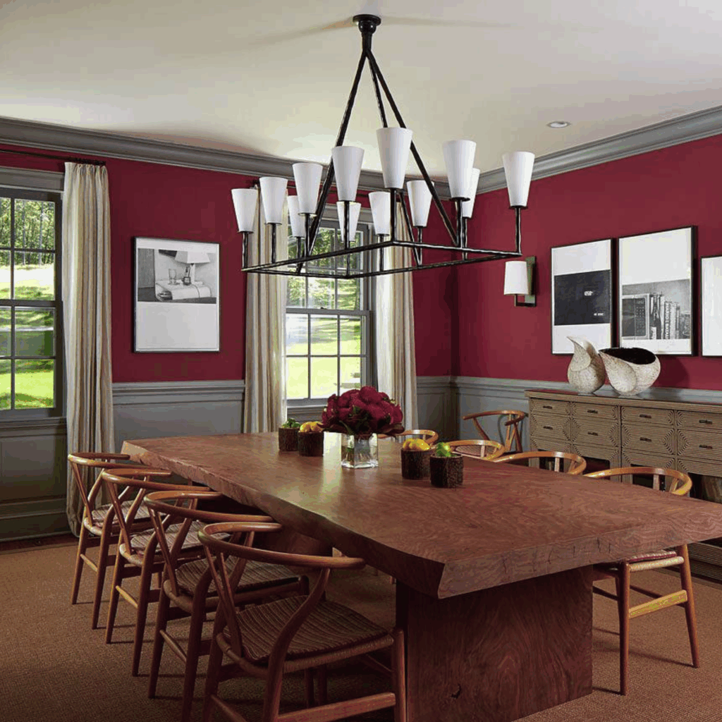 Tip Dyrlo: pinta una pared de acento detrás del comedor y complementa con un espejo grande o guirnaldas navideñas. Tu mesa lucirá más acogedora y moderna.