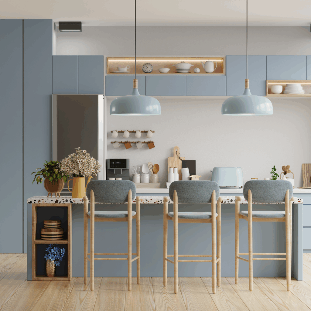 En la cocina, los tonos claros y luminosos siguen siendo tendencia, pero se combinan con acentos más atrevidos:
