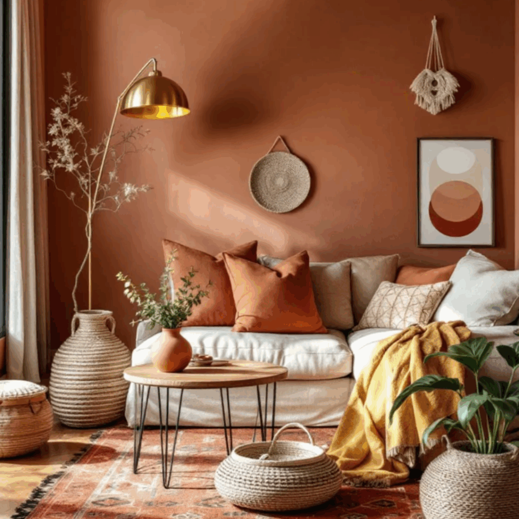 Terracota o arcilla suave: transmiten calidez y se complementan con luces cálidas o adornos cobrizos.